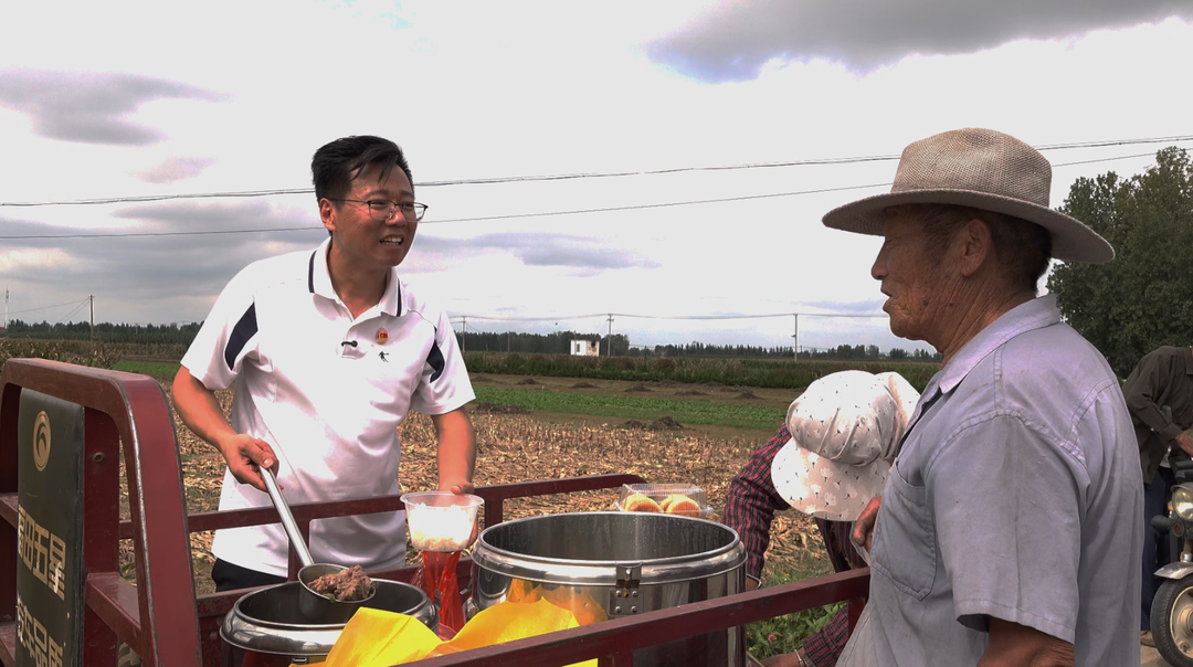村书记咋想起给村民送饭?给在地垄吃饭的村民倒上热水后,孙钦亮说出缘由:今年秋收逢雨季,来回的路很难走,为省出时间抢收,村民们吃饭没准点。赶上雨天,带来“凑合一顿”的煎饼也都湿透了。看在眼里的孙钦亮很想为抢收的老乡们做些什么,“让村民吃上热乎饭”的想法从心里冒出。